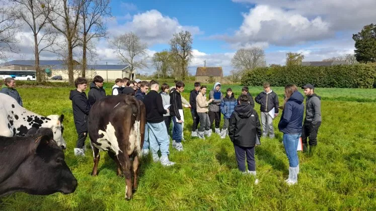 Le matin, ils sont allés visiter le GAEC de Brandéha. L'objectif était de découvrir un système de production différent et d'aborder l'alimentation des vaches laitières. Un grand merci à Benoit pour son accueil.